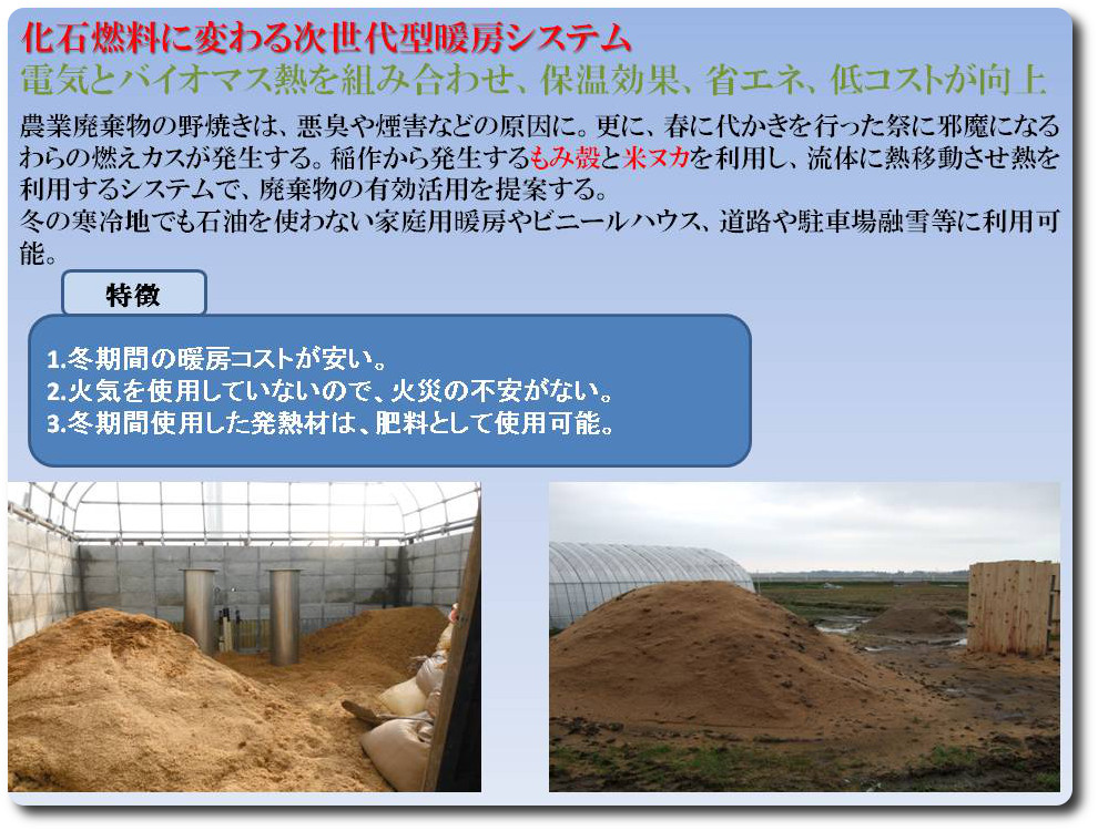 弊社で農家のために開発しました、もみ殻発酵熱循環システムを活用したハウス栽培農業ついてご説明をさせていただきます。