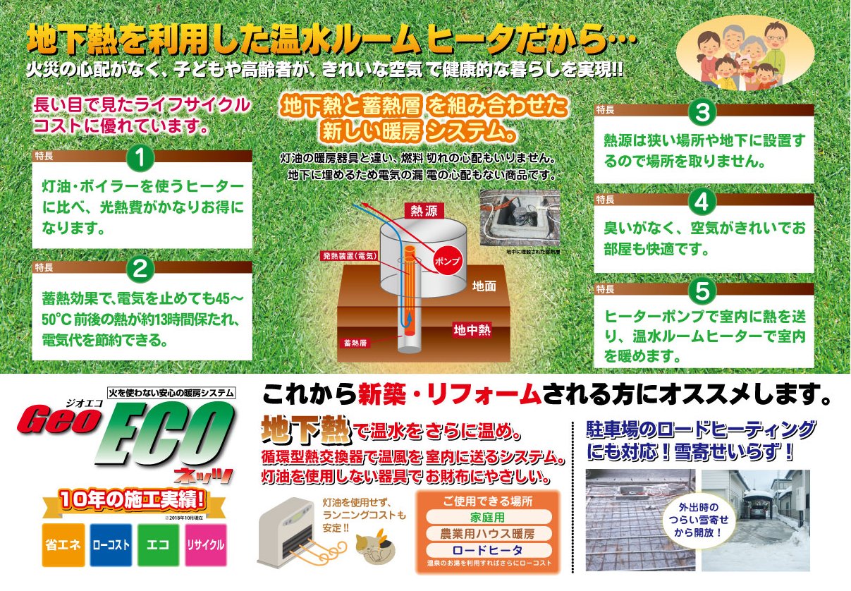 火災の心配も無く、きれいな空気で健康的な暮らしを実現!駐車場のロードヒーティング等にも対応可能です。